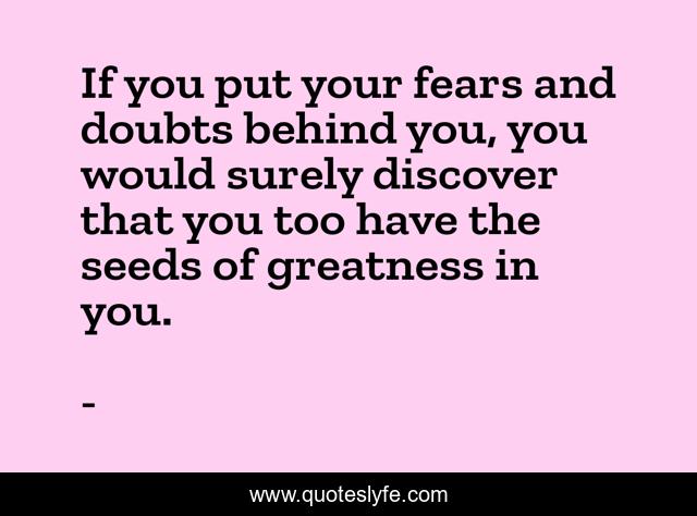 If you put your fears and doubts behind you, you would surely discover that you too have the seeds of greatness in you.