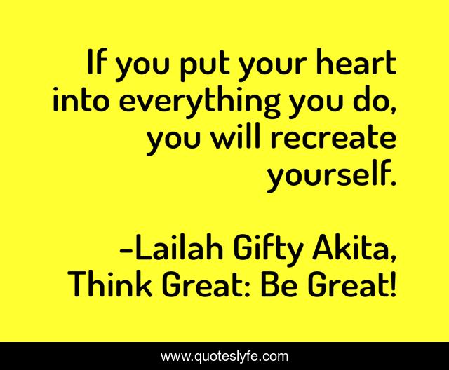 "Lailah Gifty Akita, Think Great: Be Great! Quotes." Quoteslyfe.com, 2025. Sun. 07 Dec. 2025. <https://www.quoteslyfe.com/quote/If-you-put-your-heart-into-everything-65158>.
