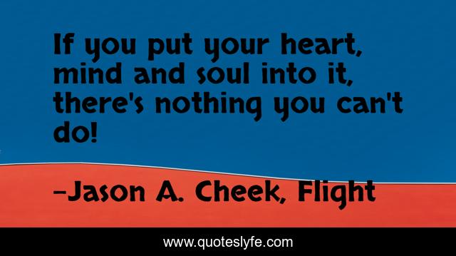 This page presents the quote "If you put your heart, mind and soul into it, there's nothing you can't do!". Author of this quote is Jason A. Cheek, Flight. This quote is about fantasy, urban-fantasy,.