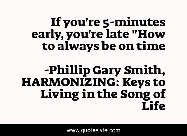 "Phillip Gary Smith, HARMONIZING: Keys to Living in the Song of Life Quotes." Quoteslyfe.com, 2025. Sun. 07 Dec. 2025. <https://www.quoteslyfe.com/quote/If-you-re-5-minutes-early-you-254448>.