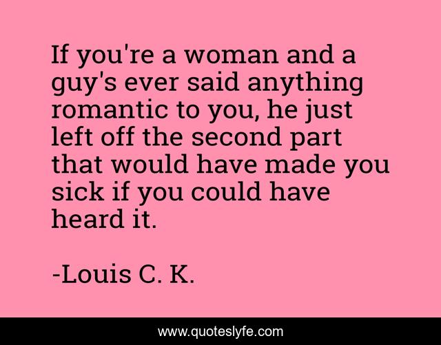 This page presents the quote "If you're a woman and a guy's ever said anything romantic to you, he just left off the second part that would have made you sick if you could have heard it.". Author of this quote is Louis C. K.. This quote is about woman, sick,.