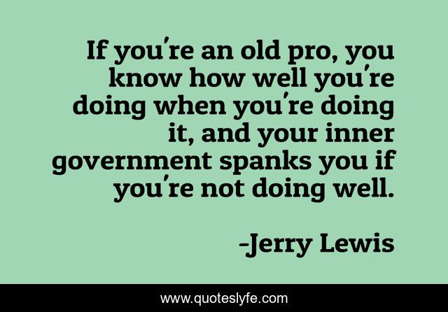 This page presents the quote "If you're an old pro, you know how well you're doing when you're doing it, and your inner government spanks you if you're not doing well.". Author of this quote is Jerry Lewis. .