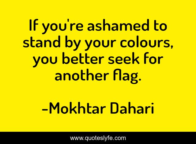 This page presents the quote "If you're ashamed to stand by your colours, you better seek for another flag.". Author of this quote is Mokhtar Dahari. This quote is about enthusiasm, football, patriotism, inspirational,.