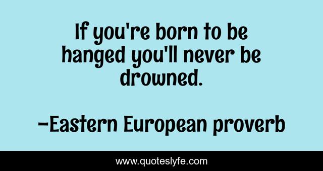 This page presents the quote "If you're born to be hanged you'll never be drowned.". Author of this quote is Eastern European proverb. This quote is about destiny, fate,.