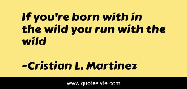 This page presents the quote "If you're born with in the wild you run with the wild". Author of this quote is Cristian L. Martinez. This quote is about wild, life-and-living,.
