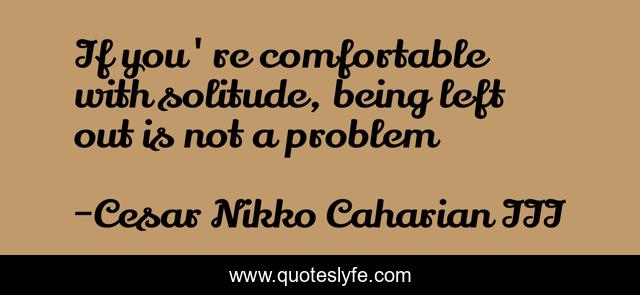 This page presents the quote "If you're comfortable with solitude, being left out is not a problem". Author of this quote is Cesar Nikko Caharian III. This quote is about motivation, brave, solitude, inspirational, alone, enthusiasm,.