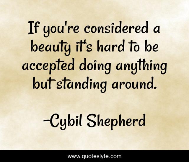 This page presents the quote "If you're considered a beauty it's hard to be accepted doing anything but standing around.". Author of this quote is Cybil Shepherd. .