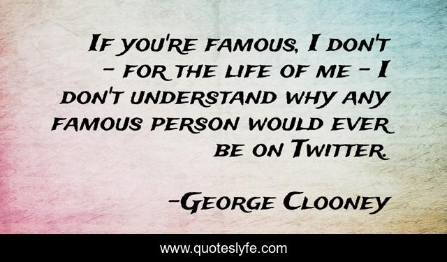 This page presents the quote "If you're famous, I don't - for the life of me - I don't understand why any famous person would ever be on Twitter.". Author of this quote is George Clooney. This quote is about me, life, why,.