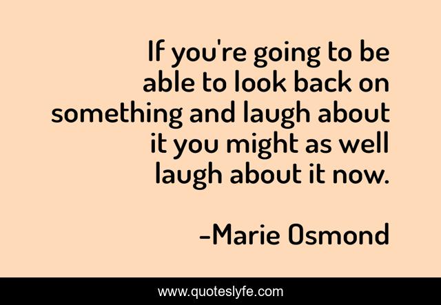 This page presents the quote "If you're going to be able to look back on something and laugh about it you might as well laugh about it now.". Author of this quote is Marie Osmond. .