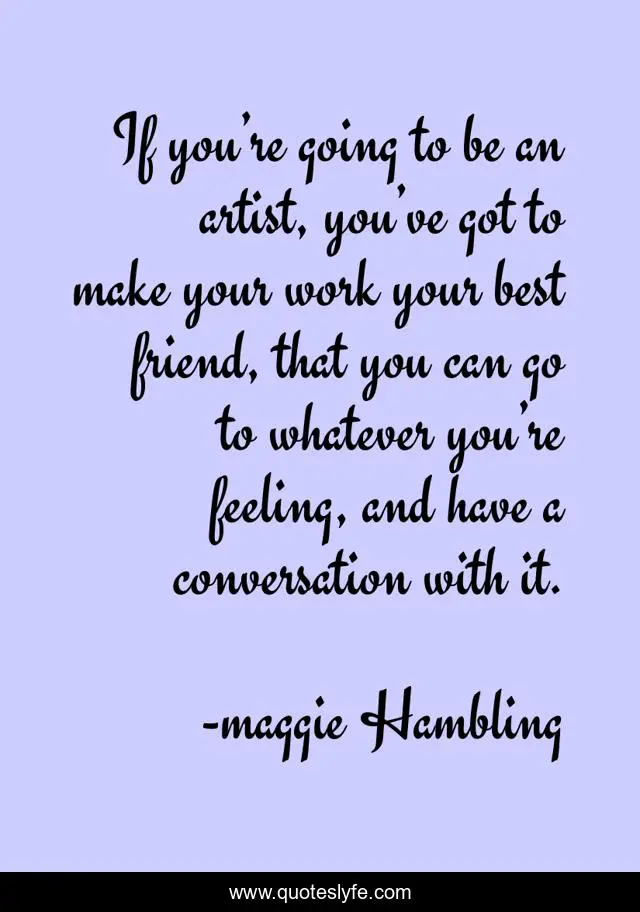 This page presents the quote "If you’re going to be an artist, you’ve got to make your work your best friend, that you can go to whatever you’re feeling, and have a conversation with it.". Author of this quote is maggie Hambling. This quote is about art, artist,.