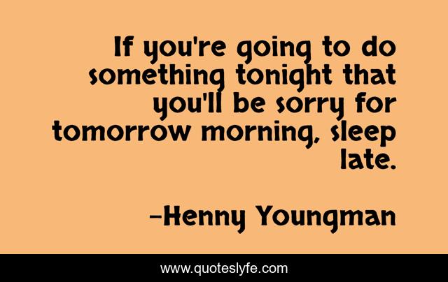 This page presents the quote "If you're going to do something tonight that you'll be sorry for tomorrow morning, sleep late.". Author of this quote is Henny Youngman. This quote is about funny, sorry, comedy, sleep,.