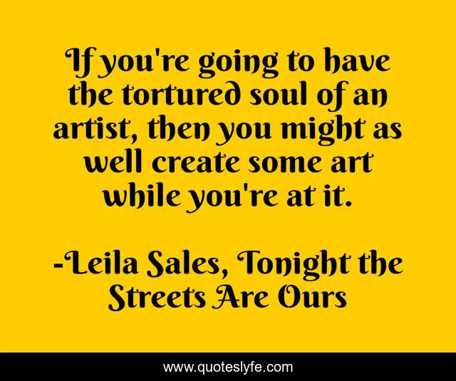 This page presents the quote "If you're going to have the tortured soul of an artist, then you might as well create some art while you're at it.". Author of this quote is Leila Sales, Tonight the Streets Are Ours. This quote is about art, artist, create, writer, soul, peter,.