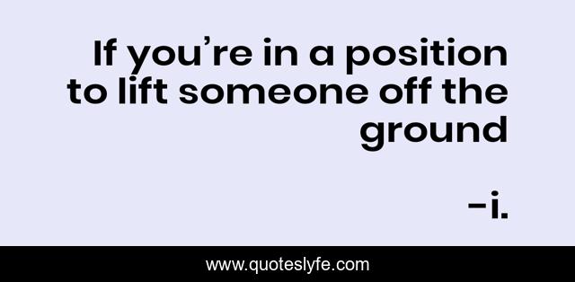 This page presents the quote "If you’re in a position to lift someone off the ground". Author of this quote is i.. .