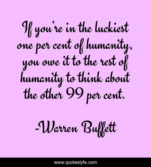 This page presents the quote "If you’re in the luckiest one per cent of humanity, you owe it to the rest of humanity to think about the other 99 per cent.". Author of this quote is Warren Buffett. This quote is about noblesse-oblige, finance, success, helping-others, inspiration, charity,.