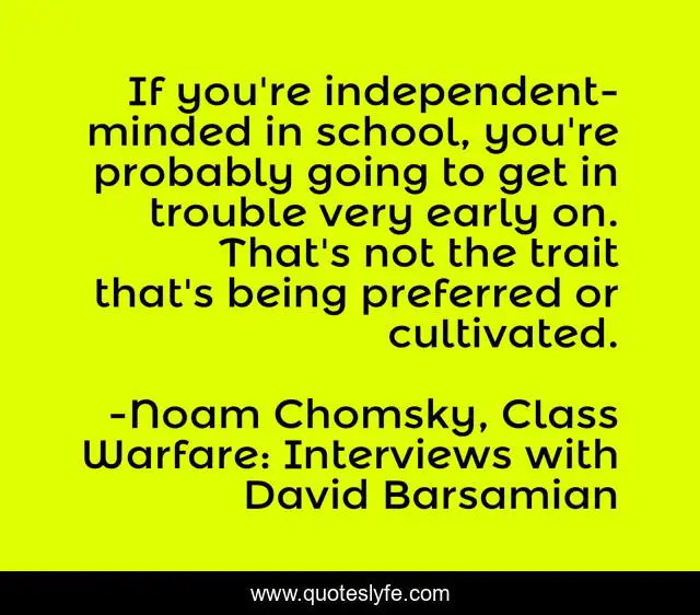 "Noam Chomsky, Class Warfare: Interviews with David Barsamian Quotes." Quoteslyfe.com, 2025. Fri. 05 Dec. 2025. <https://www.quoteslyfe.com/quote/If-you-re-independent-minded-in-school-34252>.
