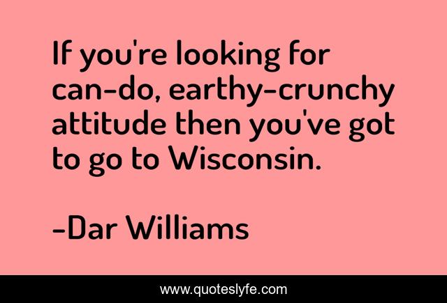 This page presents the quote "If you're looking for can-do, earthy-crunchy attitude then you've got to go to Wisconsin.". Author of this quote is Dar Williams. This quote is about looking, go,.