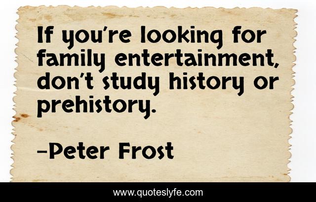 This page presents the quote "If you’re looking for family entertainment, don’t study history or prehistory.". Author of this quote is Peter Frost. This quote is about family-entertainment, prehistory, history, reality, nature,.