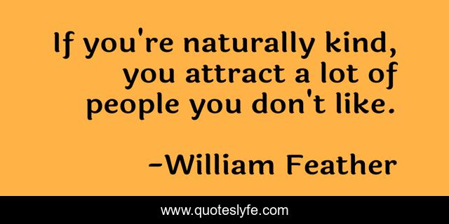 This page presents the quote "If you're naturally kind, you attract a lot of people you don't like.". Author of this quote is William Feather. This quote is about attraction, kindness, likability,.
