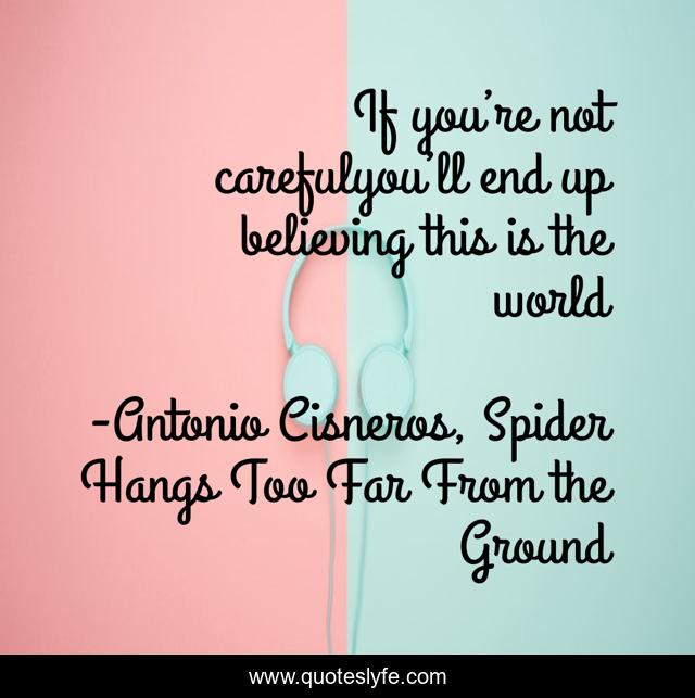 "Antonio Cisneros, Spider Hangs Too Far From the Ground Quotes." Quoteslyfe.com, 2025. Sun. 07 Dec. 2025. <https://www.quoteslyfe.com/quote/If-you-re-not-carefulyou-ll-end-93768>.