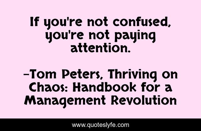"Tom Peters, Thriving on Chaos: Handbook for a Management Revolution Quotes." Quoteslyfe.com, 2025. Tue. 30 Dec. 2025. <https://www.quoteslyfe.com/quote/If-you-re-not-confused-you-re-63881>.