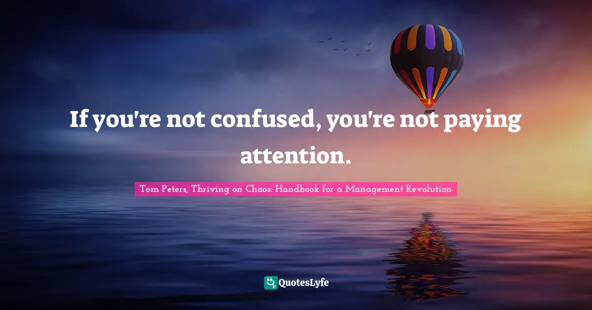 This page presents the quote "If you're not confused, you're not paying attention.". Author of this quote is Tom Peters, Thriving on Chaos: Handbook for a Management Revolution. This quote is about confusion, complexity, leadership,.