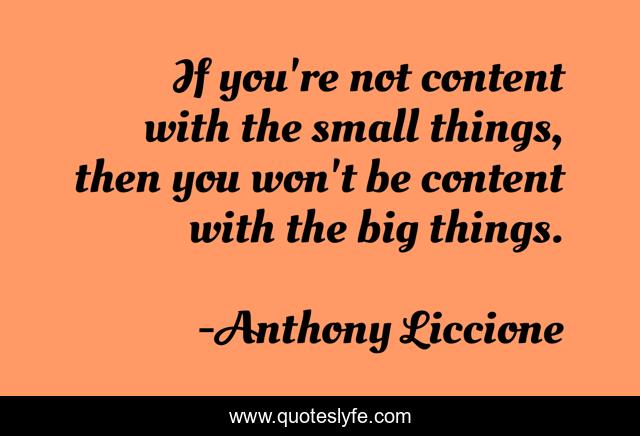 This page presents the quote "If you're not content with the small things, then you won't be content with the big things.". Author of this quote is Anthony Liccione. This quote is about humilty, contentment, happy,.