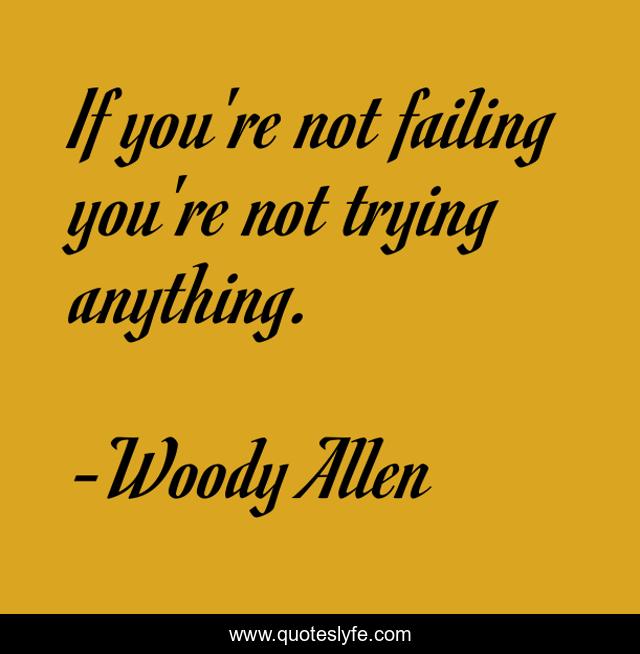 This page presents the quote "If you're not failing you're not trying anything.". Author of this quote is Woody Allen. This quote is about failures, mistakes,.