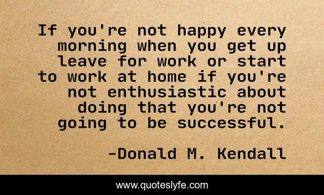 This page presents the quote "If you're not happy every morning when you get up leave for work or start to work at home if you're not enthusiastic about doing that you're not going to be successful.". Author of this quote is Donald M. Kendall. .