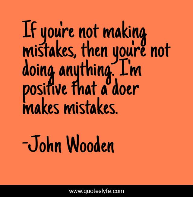 This page presents the quote "If you're not making mistakes, then you're not doing anything. I'm positive that a doer makes mistakes.". Author of this quote is John Wooden. This quote is about mistakes, making mistakes,.