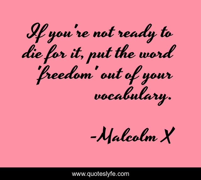 This page presents the quote "If you're not ready to die for it, put the word 'freedom' out of your vocabulary.". Author of this quote is Malcolm X. This quote is about ready, die,.