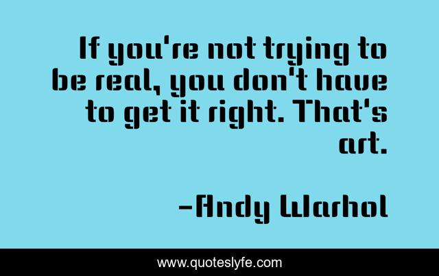 This page presents the quote "If you're not trying to be real, you don't have to get it right. That's art.". Author of this quote is Andy Warhol. This quote is about real, trying,.