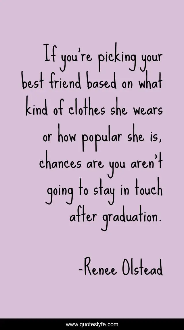 This page presents the quote "If you're picking your best friend based on what kind of clothes she wears or how popular she is, chances are you aren't going to stay in touch after graduation.". Author of this quote is Renee Olstead. This quote is about best friend, best, friend,.
