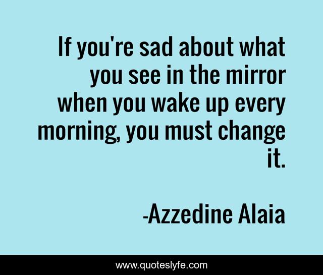 This page presents the quote "If you're sad about what you see in the mirror when you wake up every morning, you must change it.". Author of this quote is Azzedine Alaia. This quote is about morning, change, mirror,.