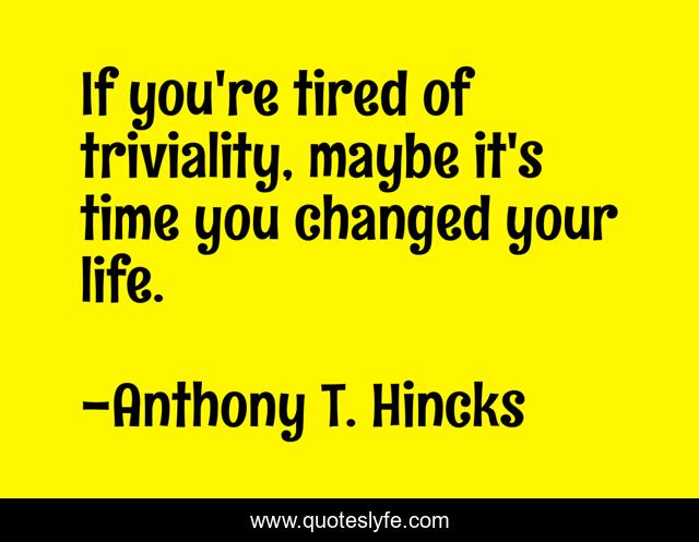 This page presents the quote "If you're tired of triviality, maybe it's time you changed your life.". Author of this quote is Anthony T. Hincks. This quote is about triviality, life, changed, tired, shallow, philosophy, change,.