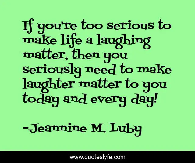 This page presents the quote "If you're too serious to make life a laughing matter, then you seriously need to make laughter matter to you today and every day!". Author of this quote is Jeannine M. Luby. This quote is about inspirational-attitude, wellness, humorist,.