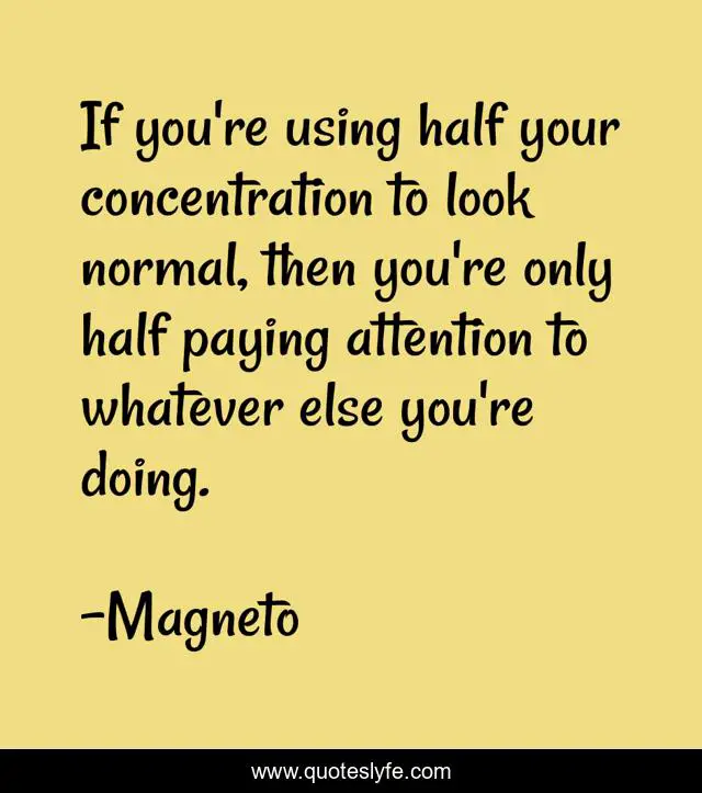 This page presents the quote "If you're using half your concentration to look normal, then you're only half paying attention to whatever else you're doing.". Author of this quote is Magneto. .