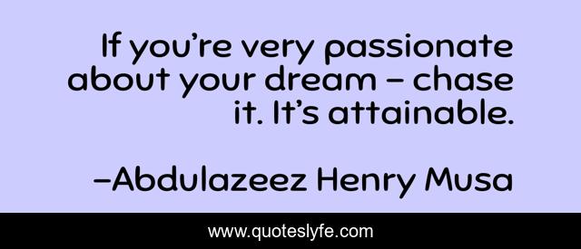 This page presents the quote "If you’re very passionate about your dream - chase it. It’s attainable.". Author of this quote is Abdulazeez Henry Musa. .