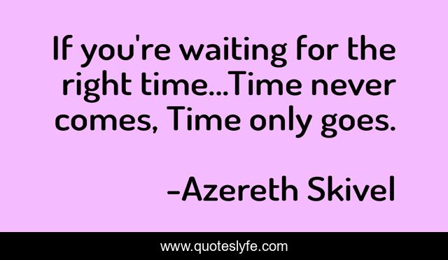 This page presents the quote "If you're waiting for the right time...Time never comes, Time only goes.". Author of this quote is Azereth Skivel. This quote is about deep-thoughts, waitinging, lost, time,.