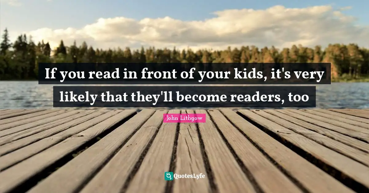 This page presents the quote "If you read in front of your kids, it's very likely that they'll become readers, too". Author of this quote is John Lithgow. This quote is about reader, kids, ifs,.