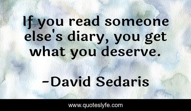 This page presents the quote "If you read someone else's diary, you get what you deserve.". Author of this quote is David Sedaris. This quote is about justice, journals, diaries, privacy,.