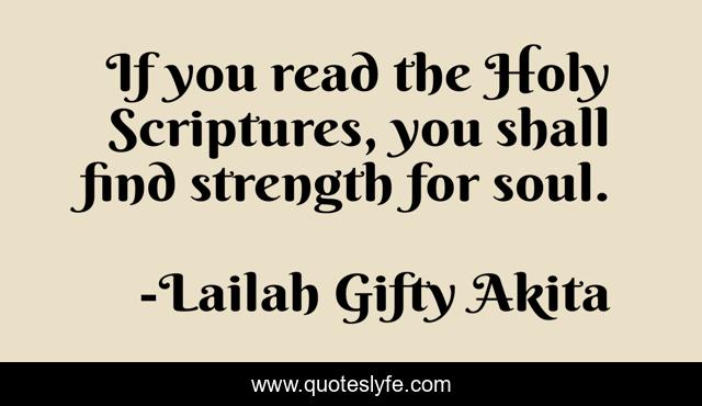 This page presents the quote "If you read the Holy Scriptures, you shall find strength for soul.". Author of this quote is Lailah Gifty Akita. This quote is about holy-scriptures, strength, christian, soul,.