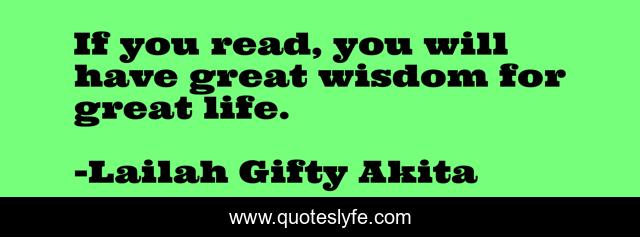 This page presents the quote "If you read, you will have great wisdom for great life.". Author of this quote is Lailah Gifty Akita. This quote is about read, self-education, life, success, greatness,.