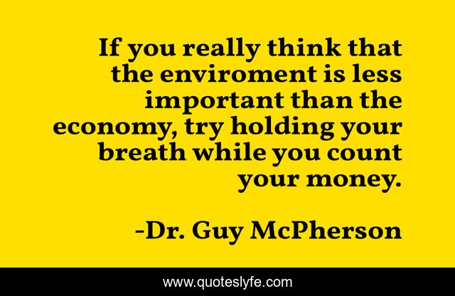 This page presents the quote "If you really think that the enviroment is less important than the economy, try holding your breath while you count your money.". Author of this quote is Dr. Guy McPherson. This quote is about environment, money,.