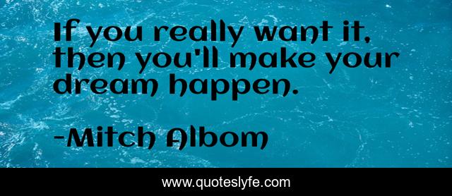 This page presents the quote "If you really want it, then you'll make your dream happen.". Author of this quote is Mitch Albom. .