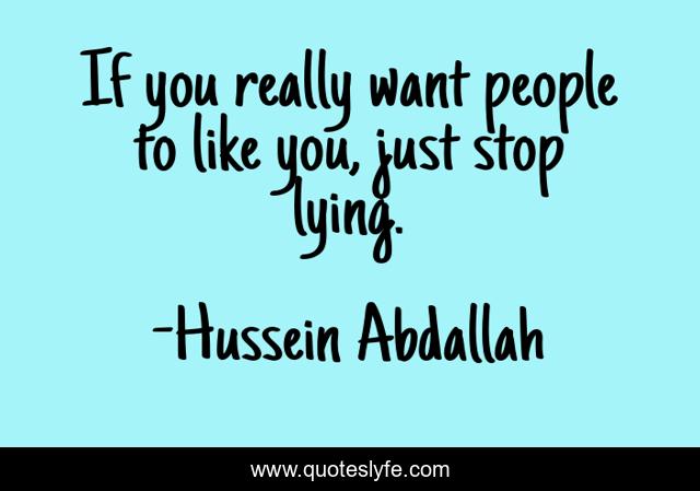 This page presents the quote "If you really want people to like you, just stop lying.". Author of this quote is Hussein Abdallah. .