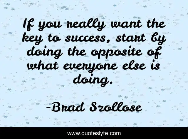 This page presents the quote "If you really want the key to success, start by doing the opposite of what everyone else is doing.". Author of this quote is Brad Szollose. This quote is about management, success, leadership, inspirational, self-help, enthusiasm,.