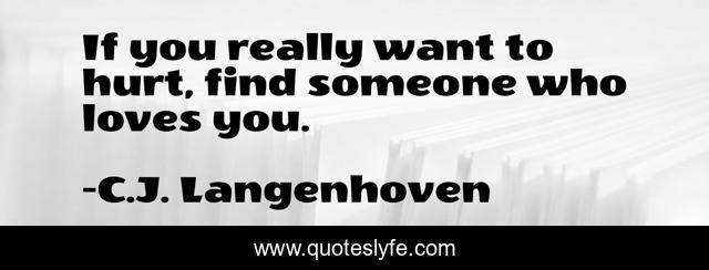 This page presents the quote "If you really want to hurt, find someone who loves you.". Author of this quote is C.J. Langenhoven. This quote is about love, affection, hurt,.