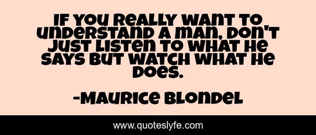 This page presents the quote "If you really want to understand a man, don't just listen to what he says but watch what he does.". Author of this quote is Maurice Blondel. .