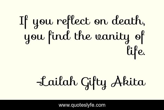 This page presents the quote "If you reflect on death, you find the vanity of life.". Author of this quote is Lailah Gifty Akita. This quote is about life, death, wisdom, reflections, inspirational, life-philosophy, enthusiasm, vanity,.