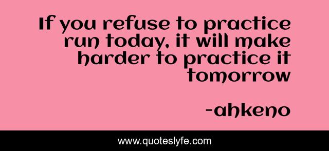 This page presents the quote "If you refuse to practice run today, it will make harder to practice it tomorrow". Author of this quote is ahkeno. This quote is about enthusiasm, running, run, inspirational,.